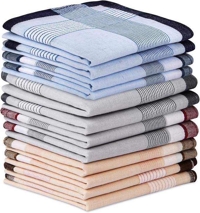 Mouchoirs en coton rayés 40x40cm, teints en fil, pour hommes, vente en gros en vrac, directement de l'usine OEM, idéal comme cadeau, lot de douze.