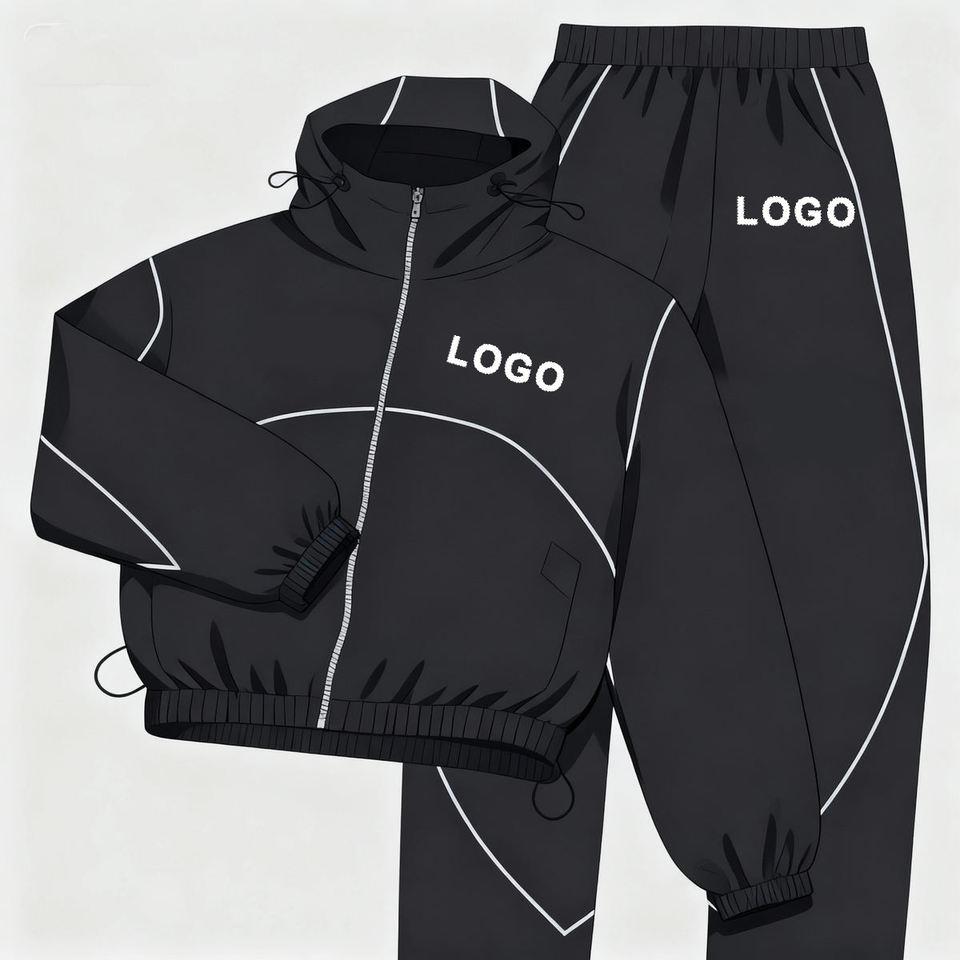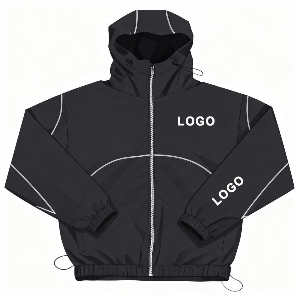 Ensemble de survêtement homme OEM personnalisé : Veste coupe-vent respirante à capuche unie effet délavé réfléchissant 3M et pantalon 100% coton