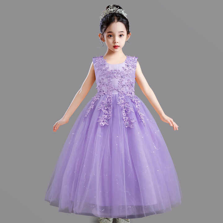 OEM Factory Custom Long Princess Wedding Dress Wholesale Girls Fluffy Mesh Gown Kids Festival Party Performance Costume