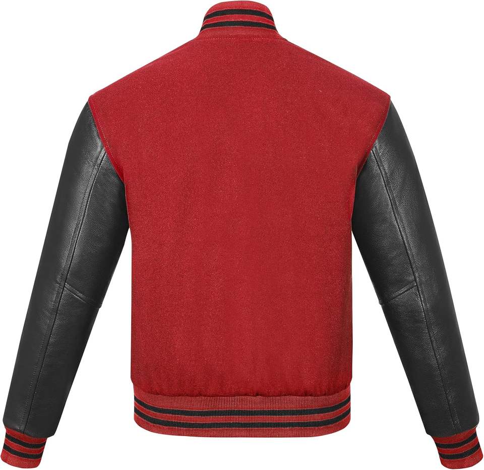 Vestes universitaires en laine similicuir personnalisées d'usine OEM pour hommes et femmes style sportif col montant fermeture à pression broderie personnalisée