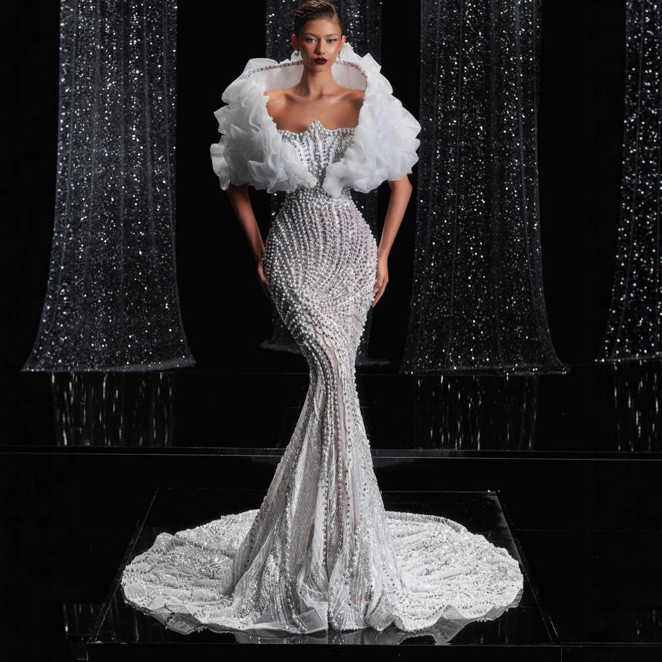 Vêtements bandage personnalisés en usine OEM dames élégante robe de gala de nuit perlée de luxe robe de bal de bonne qualité
