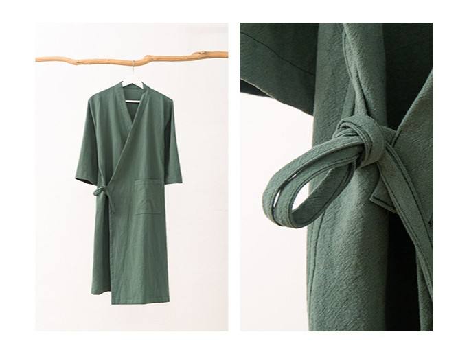 Peignoir de club haut de gamme unisexe en coton et lin, coupe kimono, grande taille, motif uni, avec cordon de serrage – Vente directe usine OEM