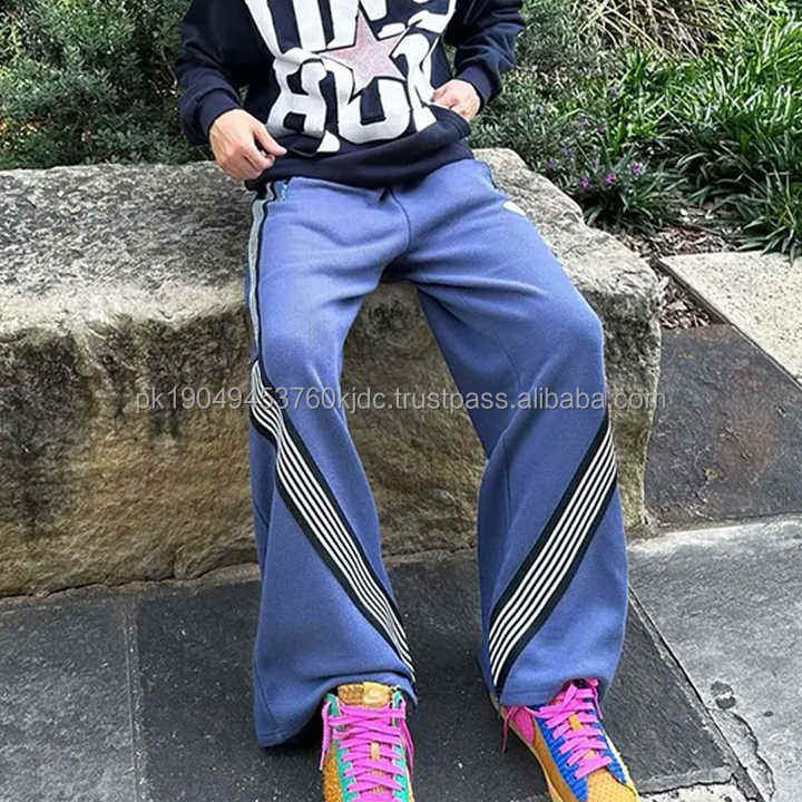Pantalon de survêtement formel pour homme en molleton gaufré 100 % coton, qualité supérieure, avec cordon de serrage central et technique de broderie, fabrication OEM