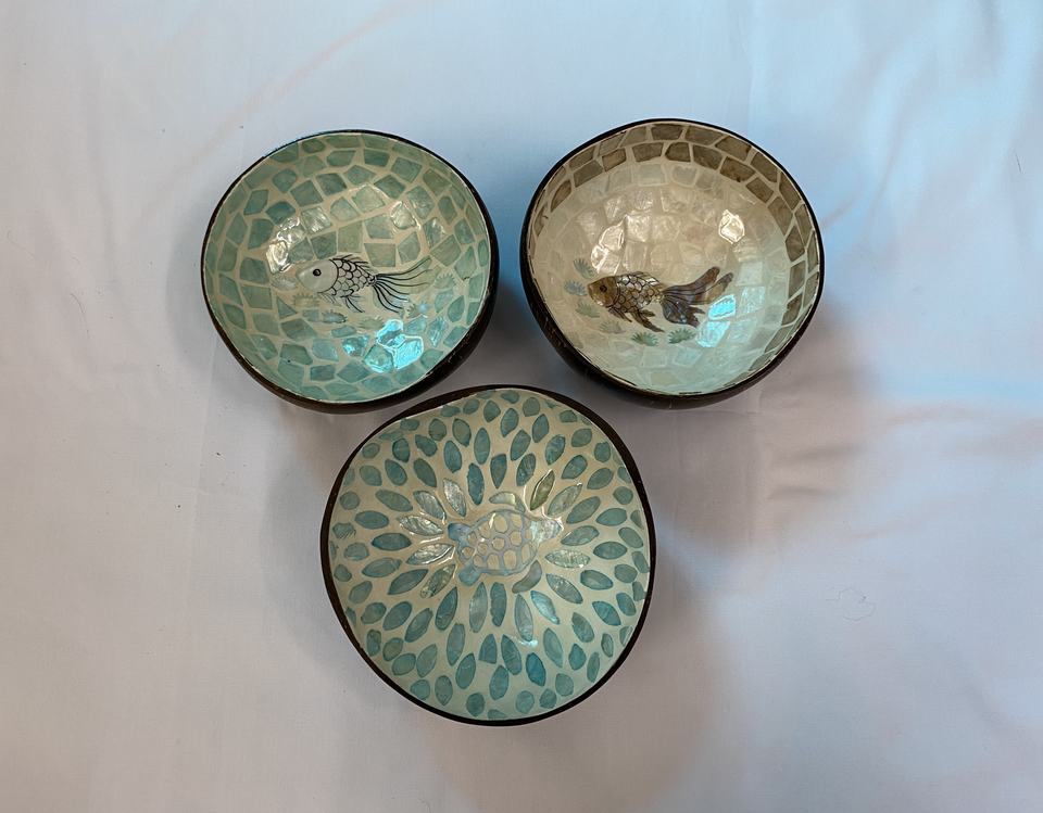 Prix usine OEM – Nouveaux ensembles de vaisselle en coquille de noix de coco polie, motif animaux, faits à la main, écologiques, pour la maison, la cuisine et les mariages