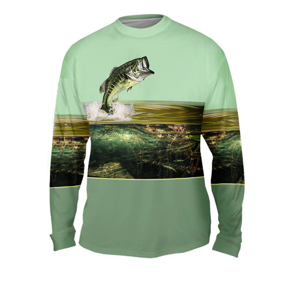 Nouveauté de l'usine OEM : Maillots de pêche de qualité professionnelle 100 % polyester, grandes tailles, protection UV, imperméables, séchage rapide, sublimation