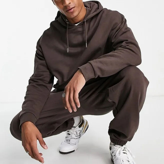 Survêtement 2 pièces 100% coton en molleton pour hommes OEM motif solide bouffant évasé empilé sérigraphie respirant écologique grande taille