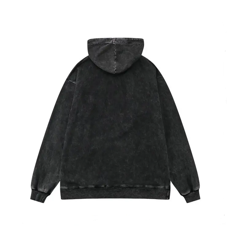 OEM Men's Casual XL Oversize Pullover Hoodie Acid Stone Wash Printed 100% Cotton Fleece Sweatshirt Free Sample Wholesale Black