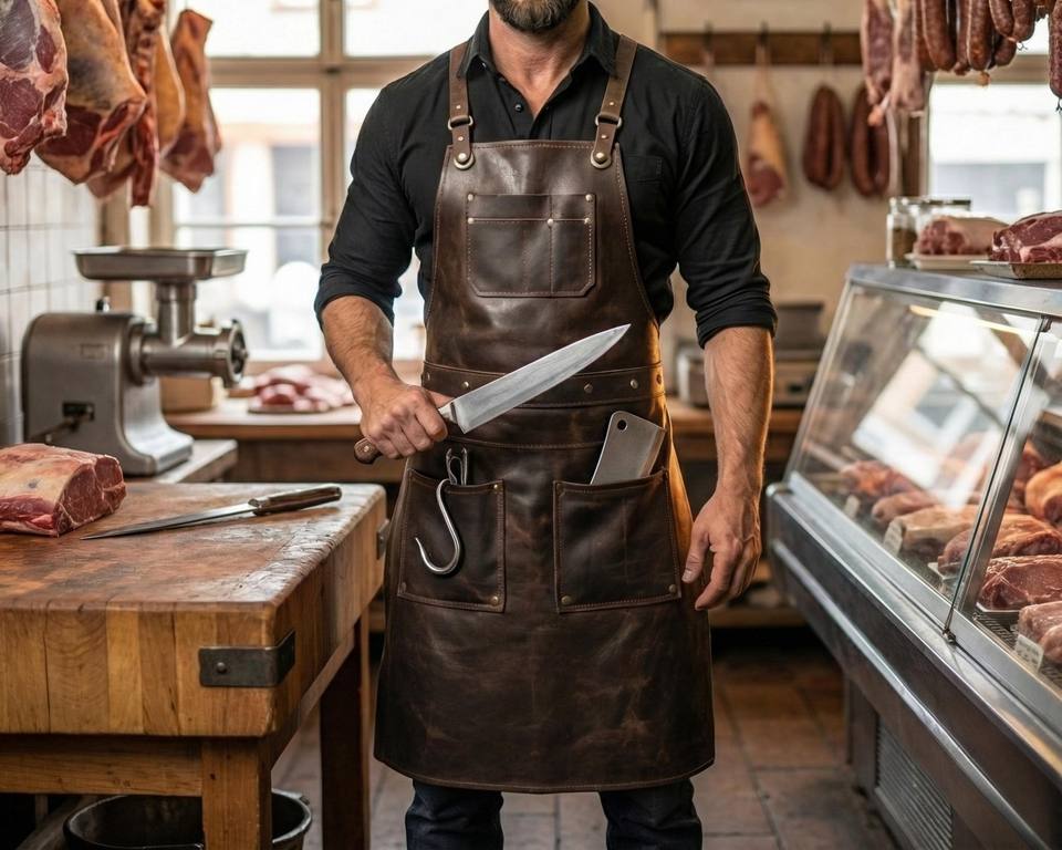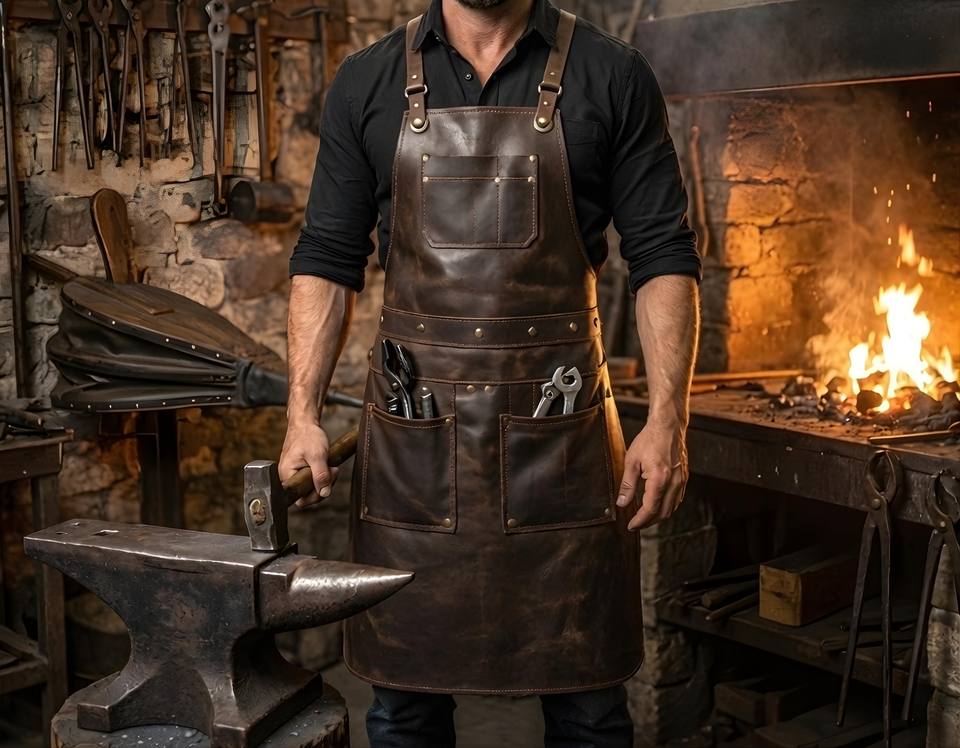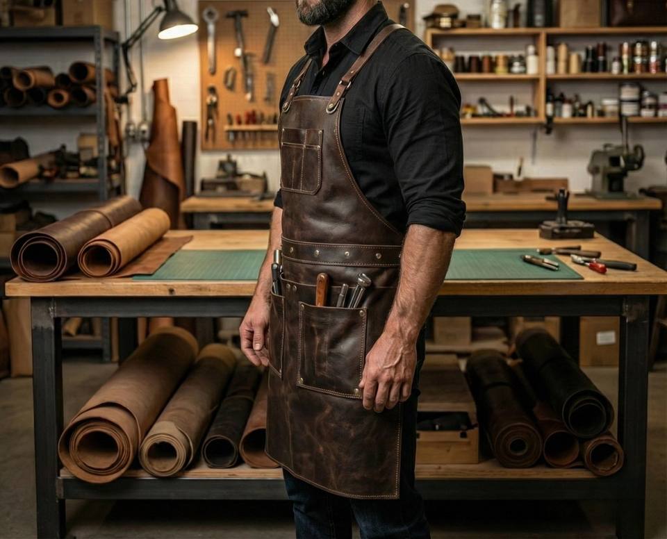 Tablier en cuir véritable OEM, fourniture directe d'usine, vêtements de travail professionnels, tailles et couleurs personnalisables LPN-0284