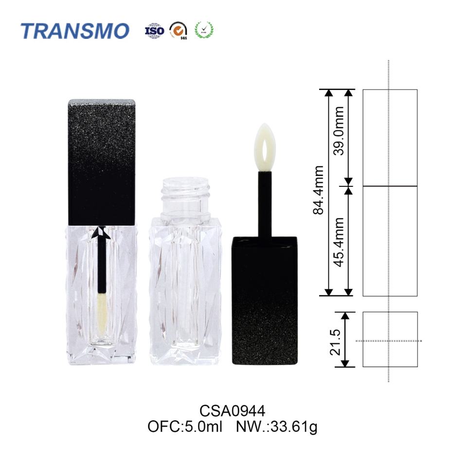 Fabricant d'équipement d'origine (OEM)/Fabricant de conception originale (ODM):OUI tubes de gloss à lèvres avec applicateur en forme de baguette et couvercle noir