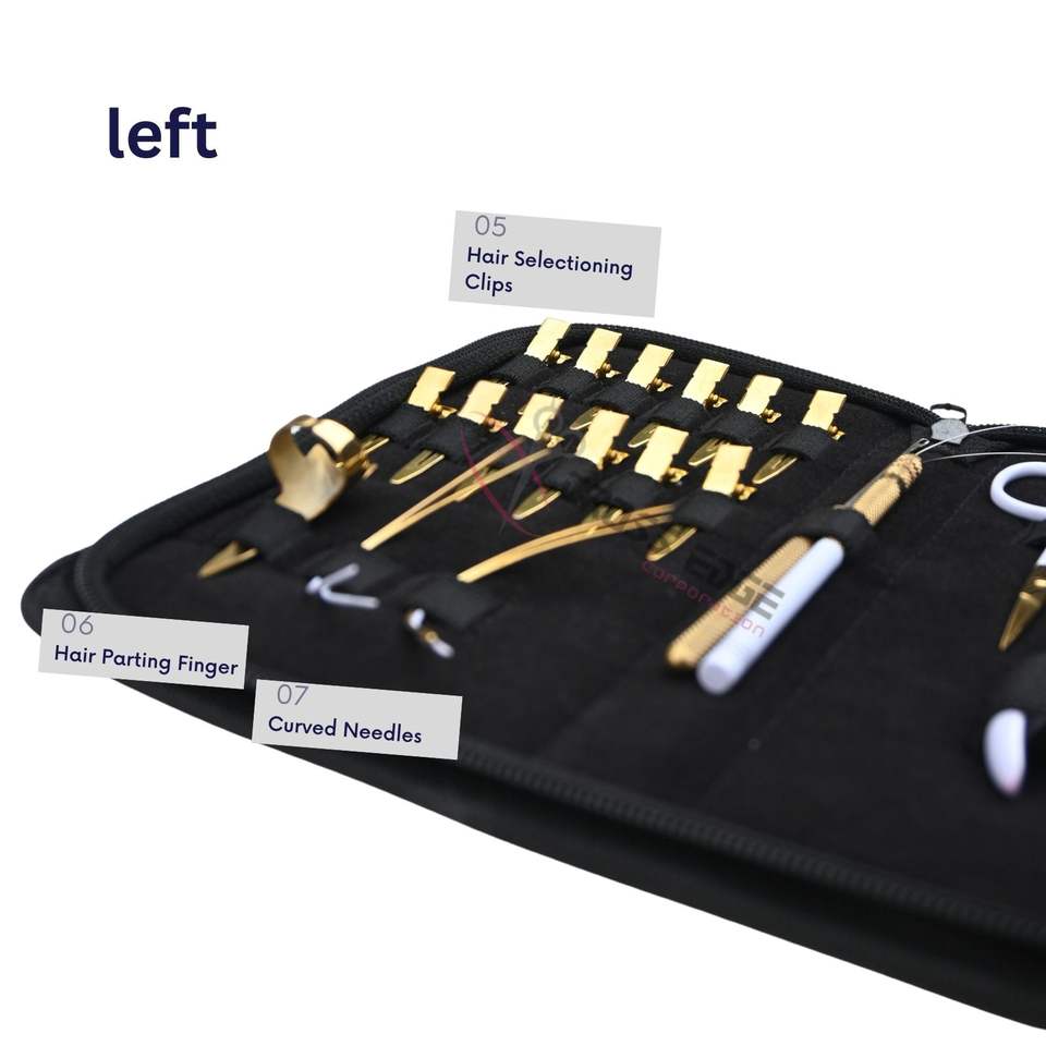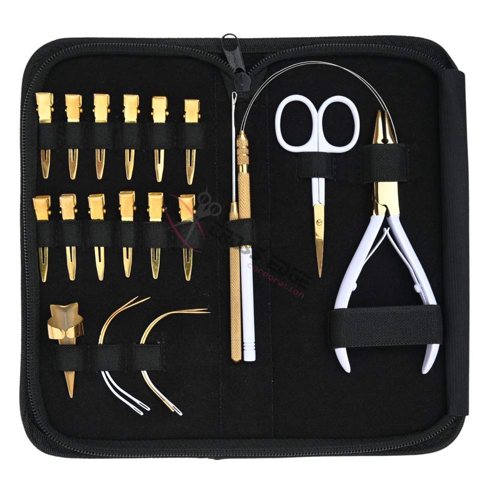 Utilisation:Trousse de coiffure pour salon de beauté : aiguilles, ciseaux, pinces, fermeture éclair, étui en rexine