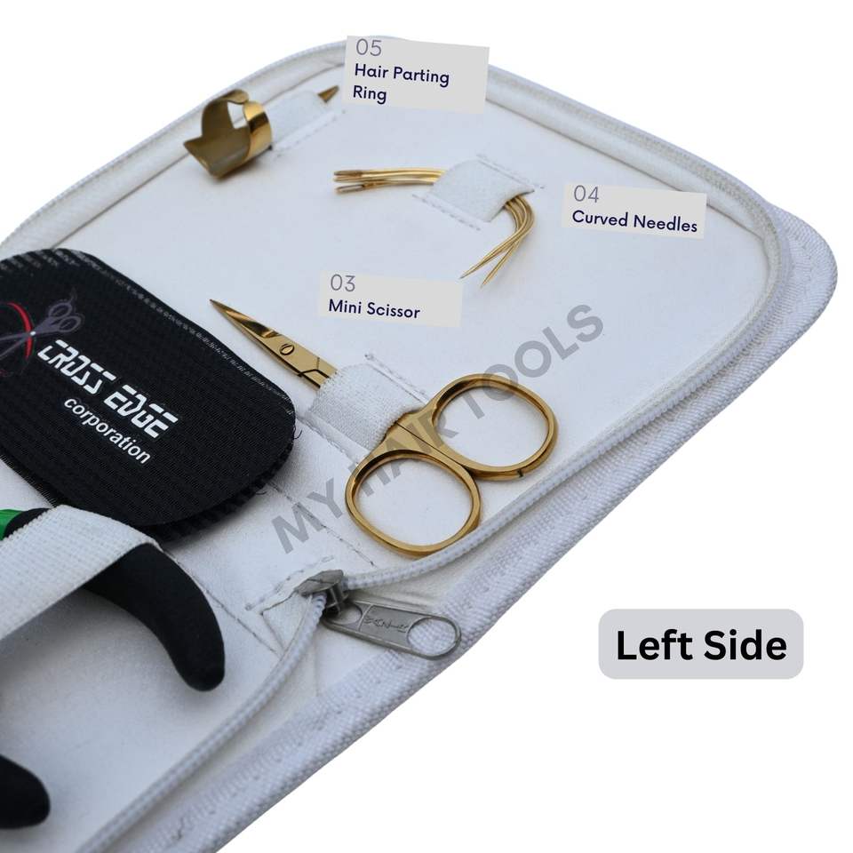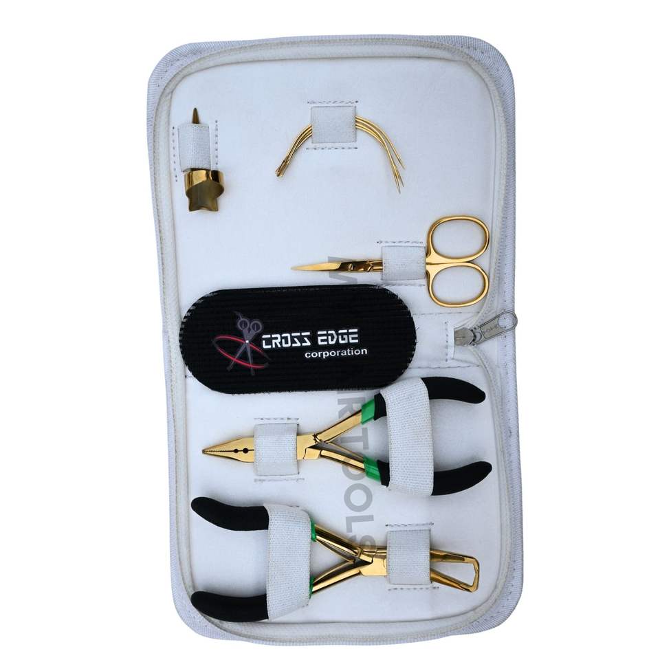 Kit d'outils pour extensions capillaires, étui blanc avec pince à micro-anneaux