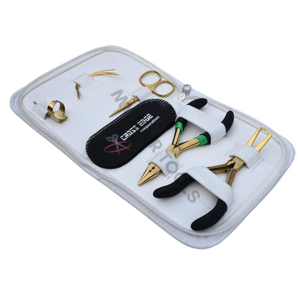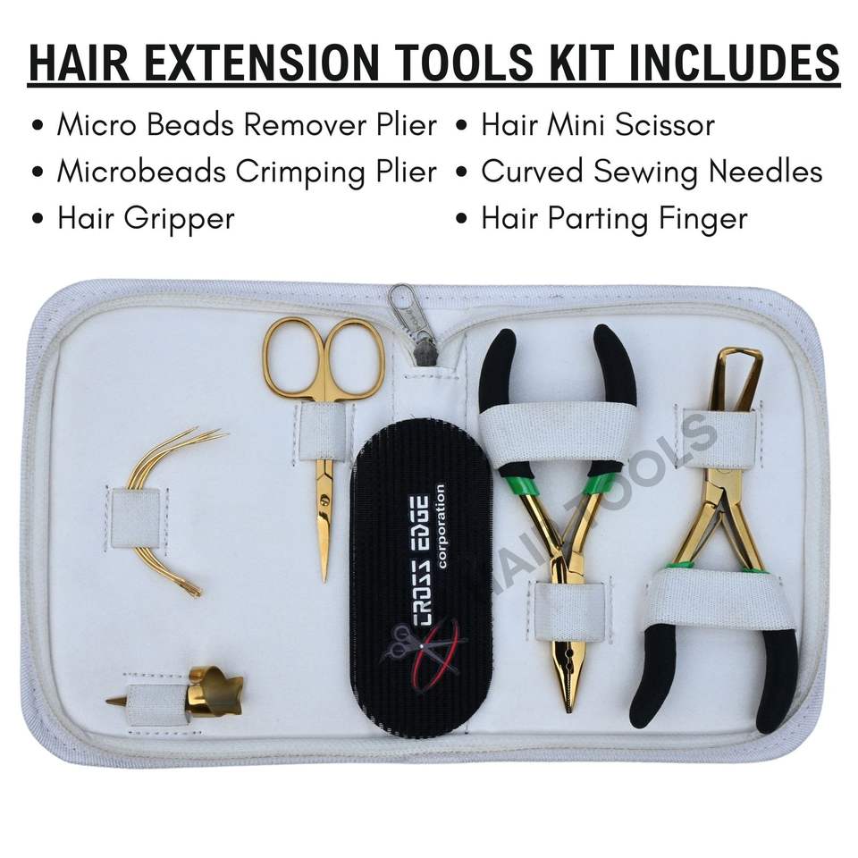 Kit d'outils pour extensions capillaires avec pinces à sertir et à retirer les micro-billes