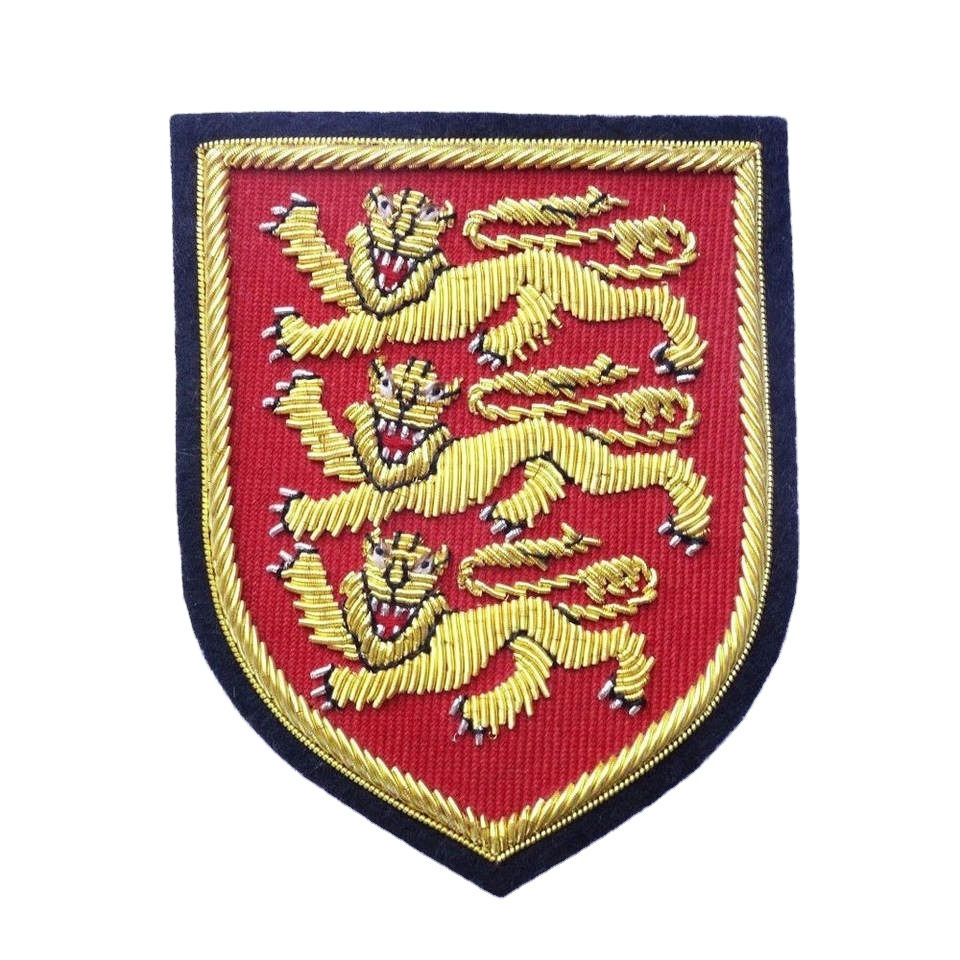 Badges et écussons uniformes personnalisables brodés à la main en fil d'or OEM, badges de blazer personnalisés en fil de soie