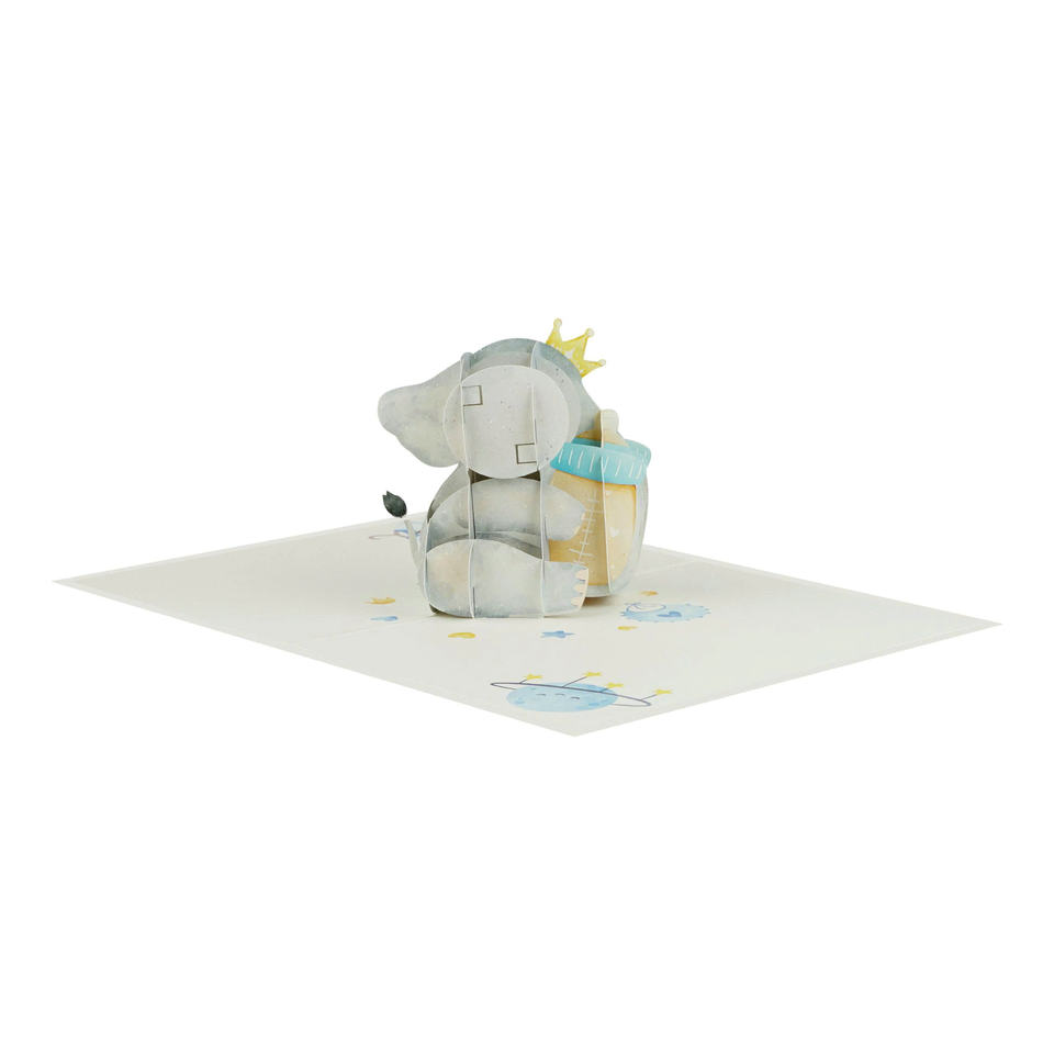 Carte pop-up 3D artisanale OEM en forme d'éléphant pour bébé, idéale pour les cadeaux et la vente au détail