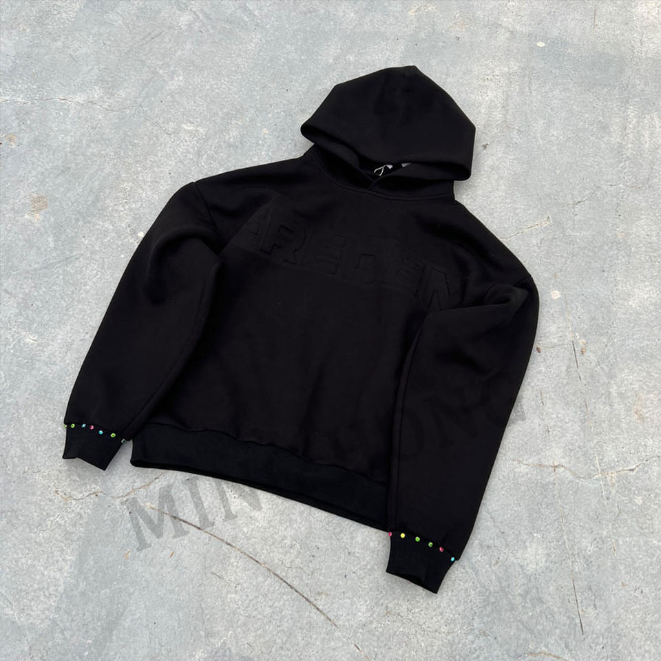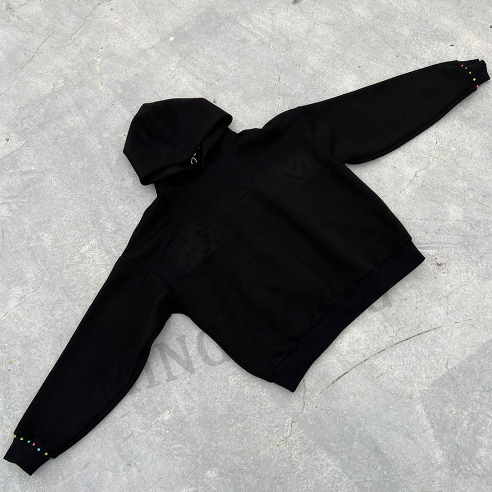 OEM Sweat à capuche épais multicolore avec strass et poignets côtelés avec poches kangourou