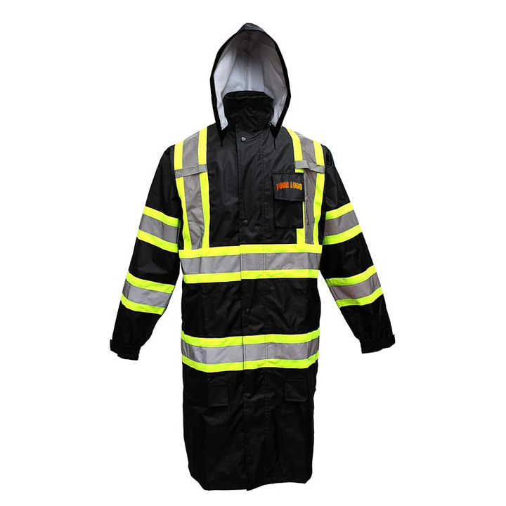 OEM Hi-Vis Safety Clothing for Adults Waterproof Breathable Reflective Strips Long Rain Coat for Hiking & Outdoor Activities