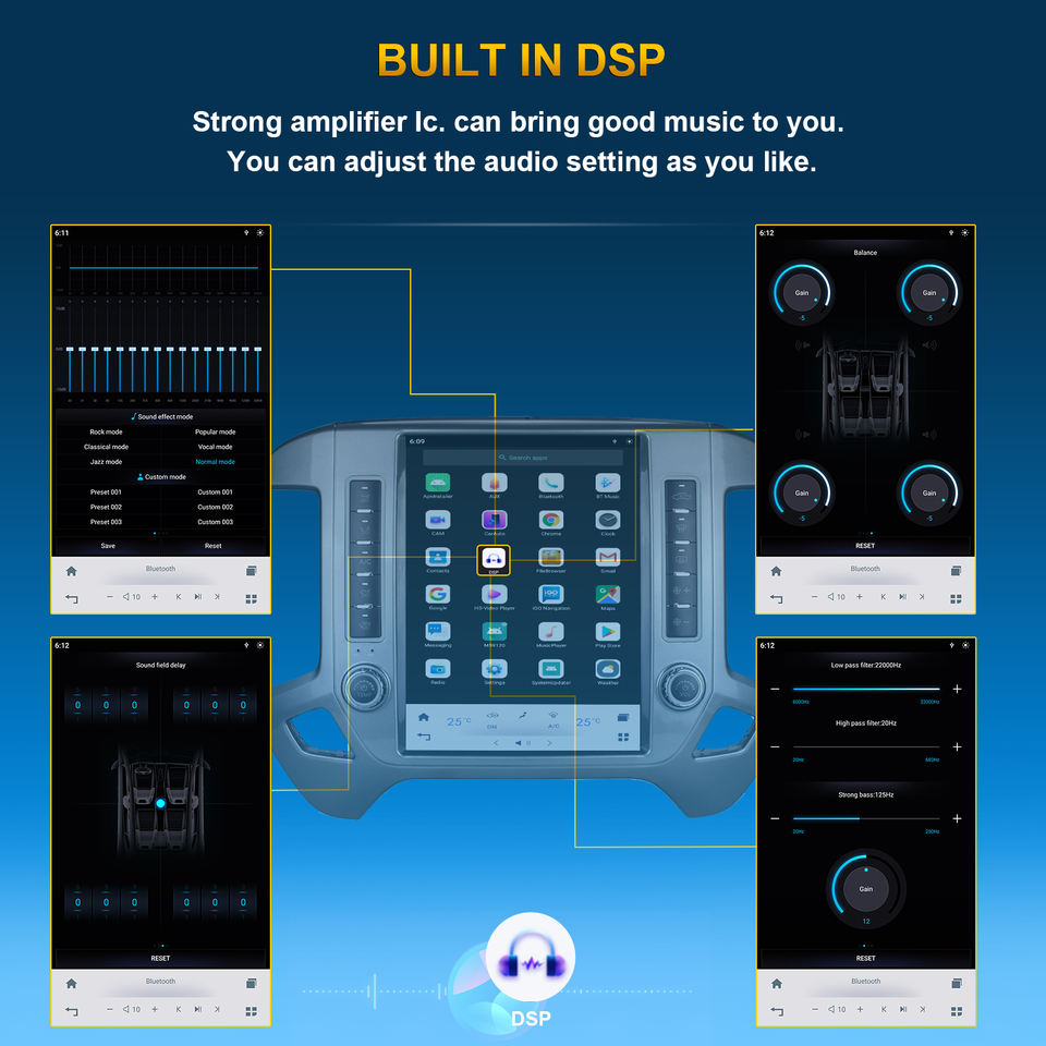 Stéréo, DSP, CarPlay, Lien de miroir, Android auto, Écran partagé, Gestionnaire de fichiers, Volant de voiture de Contrôle