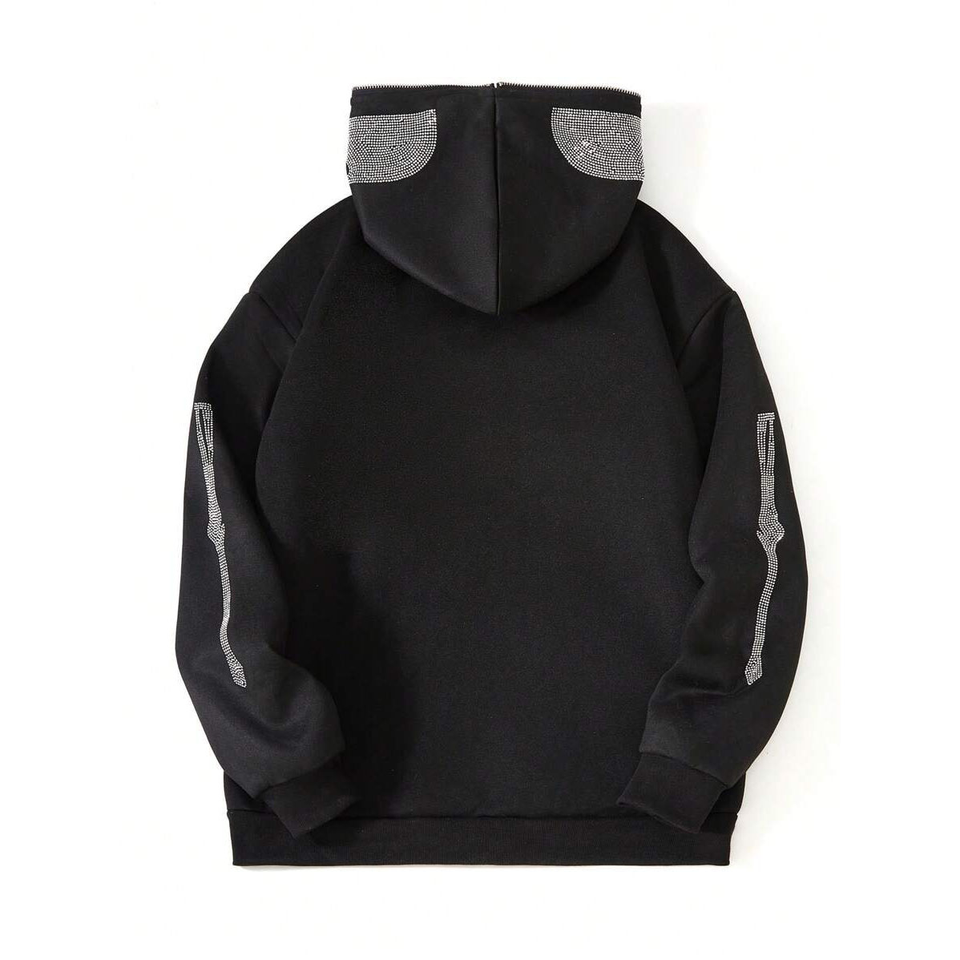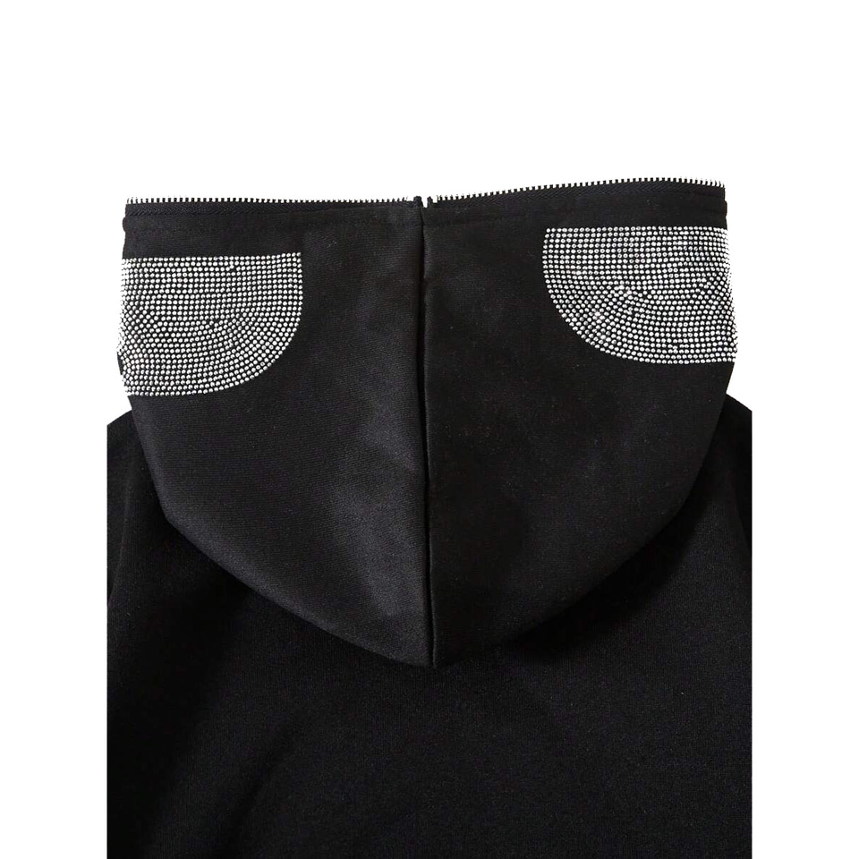 OEM Sweat à capuche zippé vierge de haute qualité Oversize Custom Weavyweight Cotton Black Zipup Hoodie Rhinestone Full Zip Up Hoodie