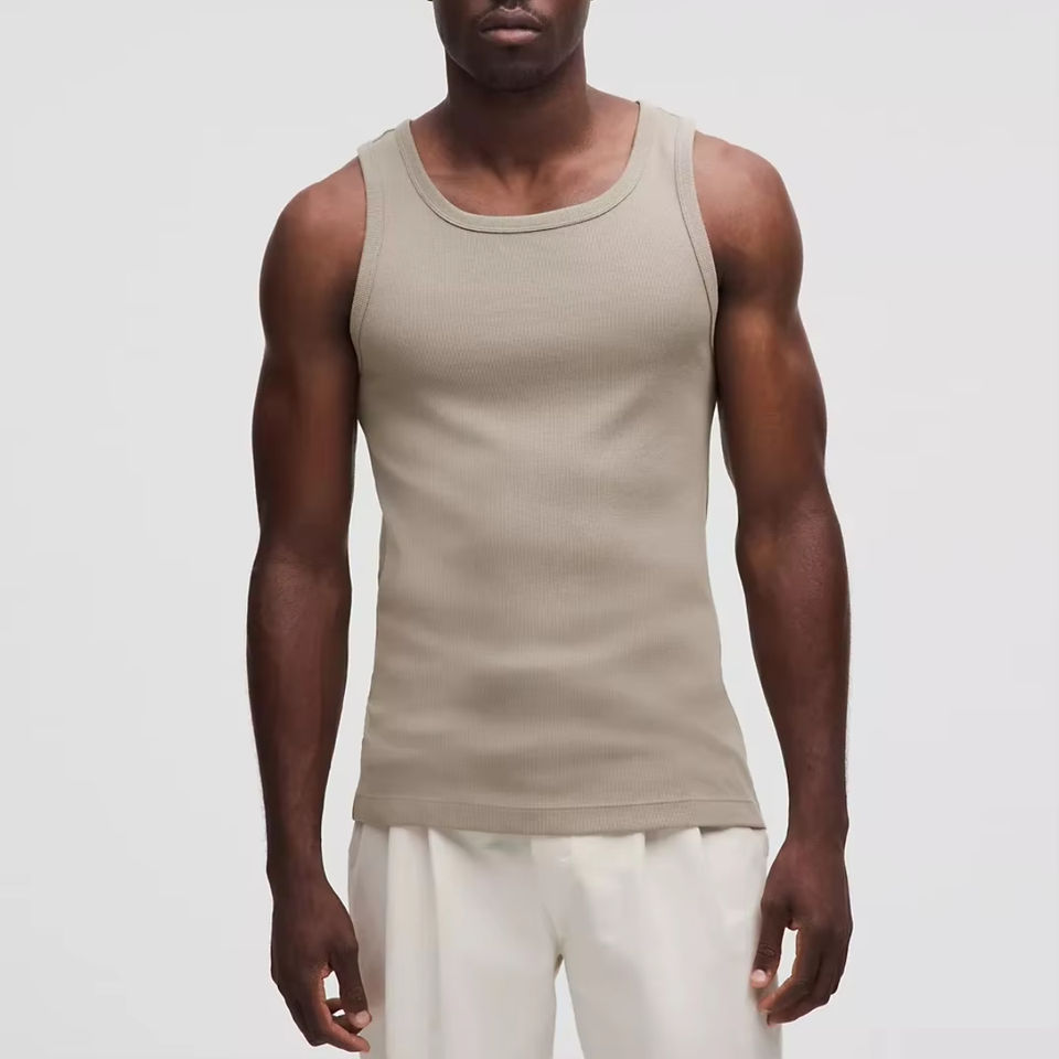 Débardeur d'entraînement vierge de haute qualité OEM, débardeur côtelé pour hommes, col carré, débardeur de fitness pour hommes