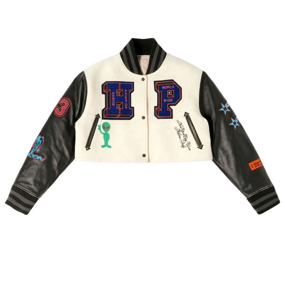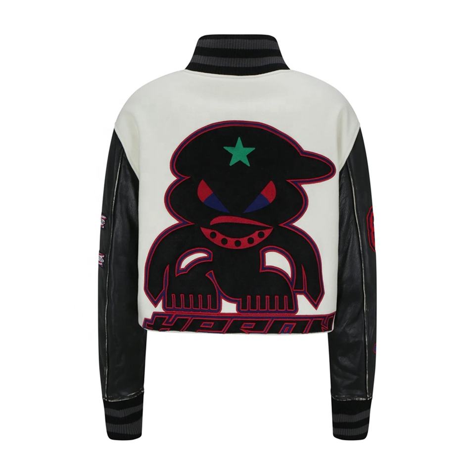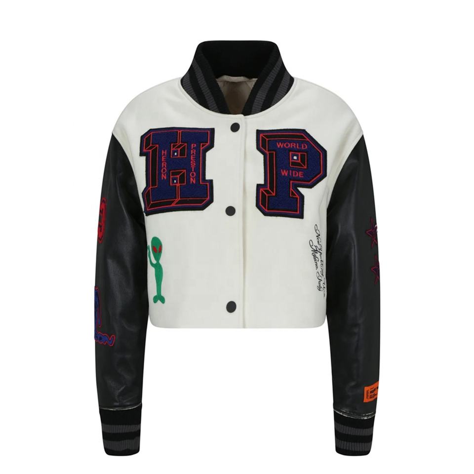 OEM Haute Qualité Chenille Broderie Hommes Collège Personnalisé Baseball Bomber Letterman Crop Applique Jersey Boxy Fit Hiver Stand