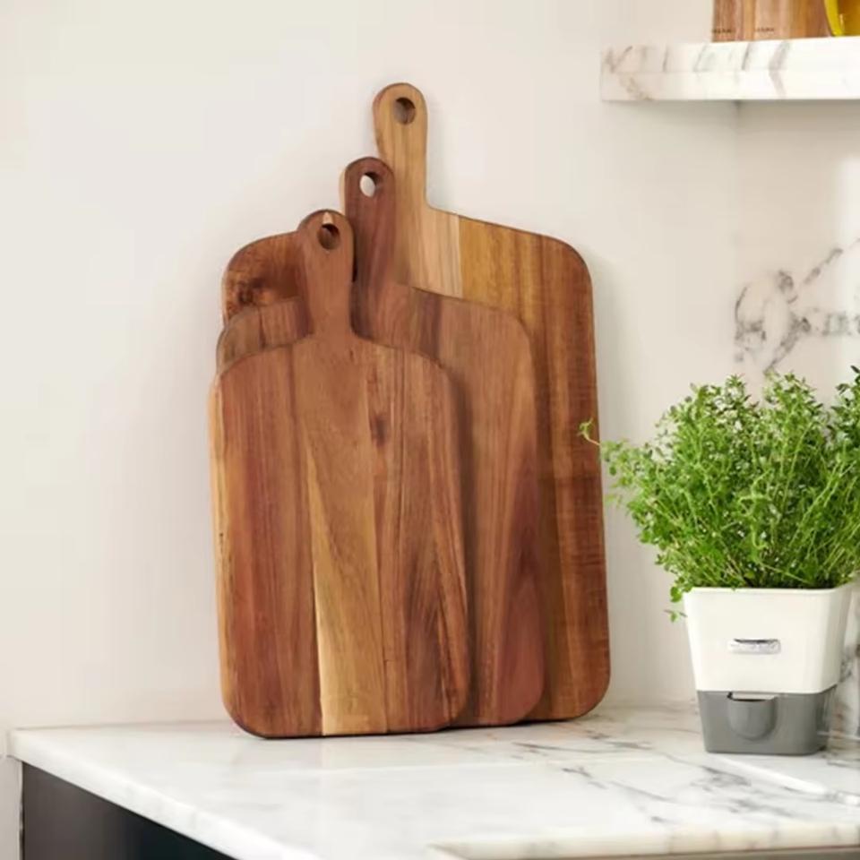 OEM High Quality Natural Acacia Wooden Cutting Board Rectangular Steak and Fruit Chopper with Handle for Kitchenware