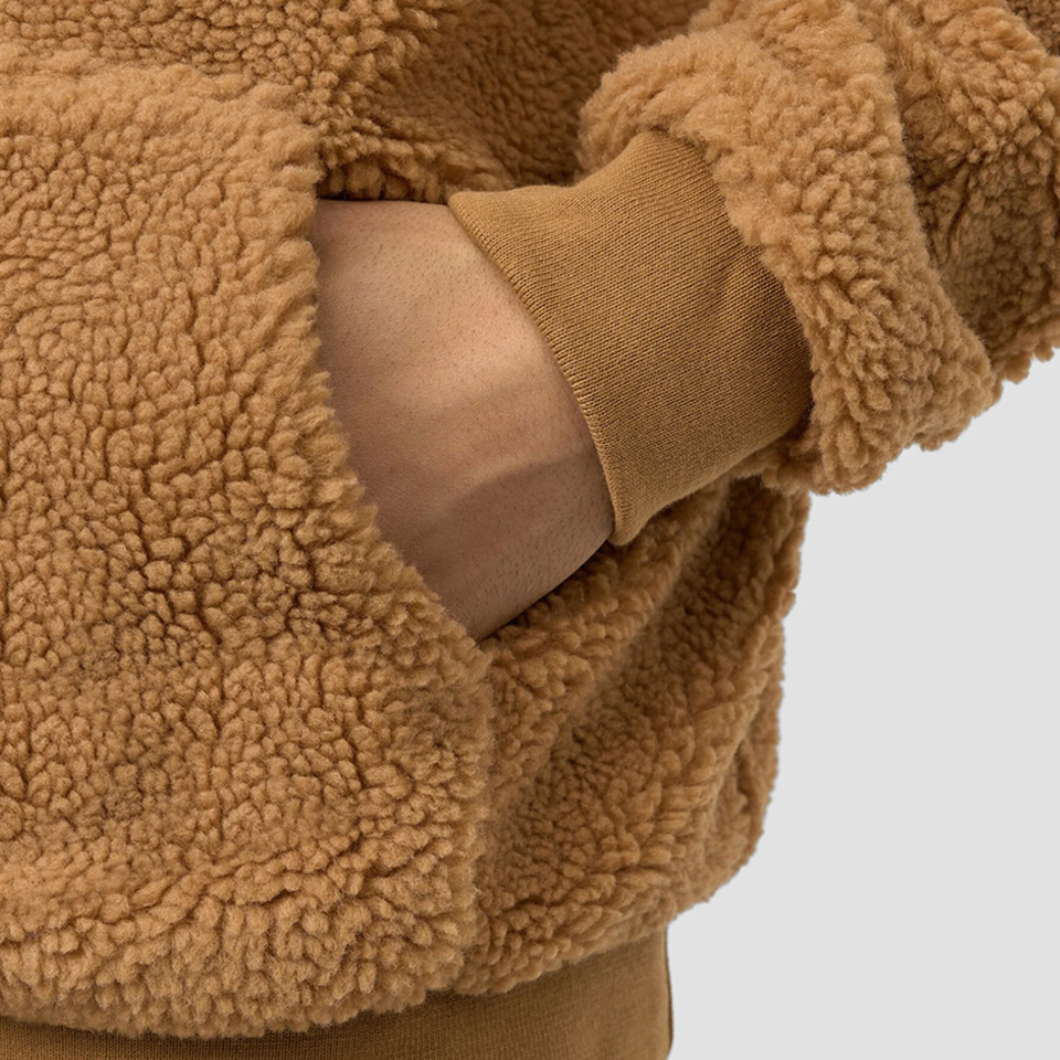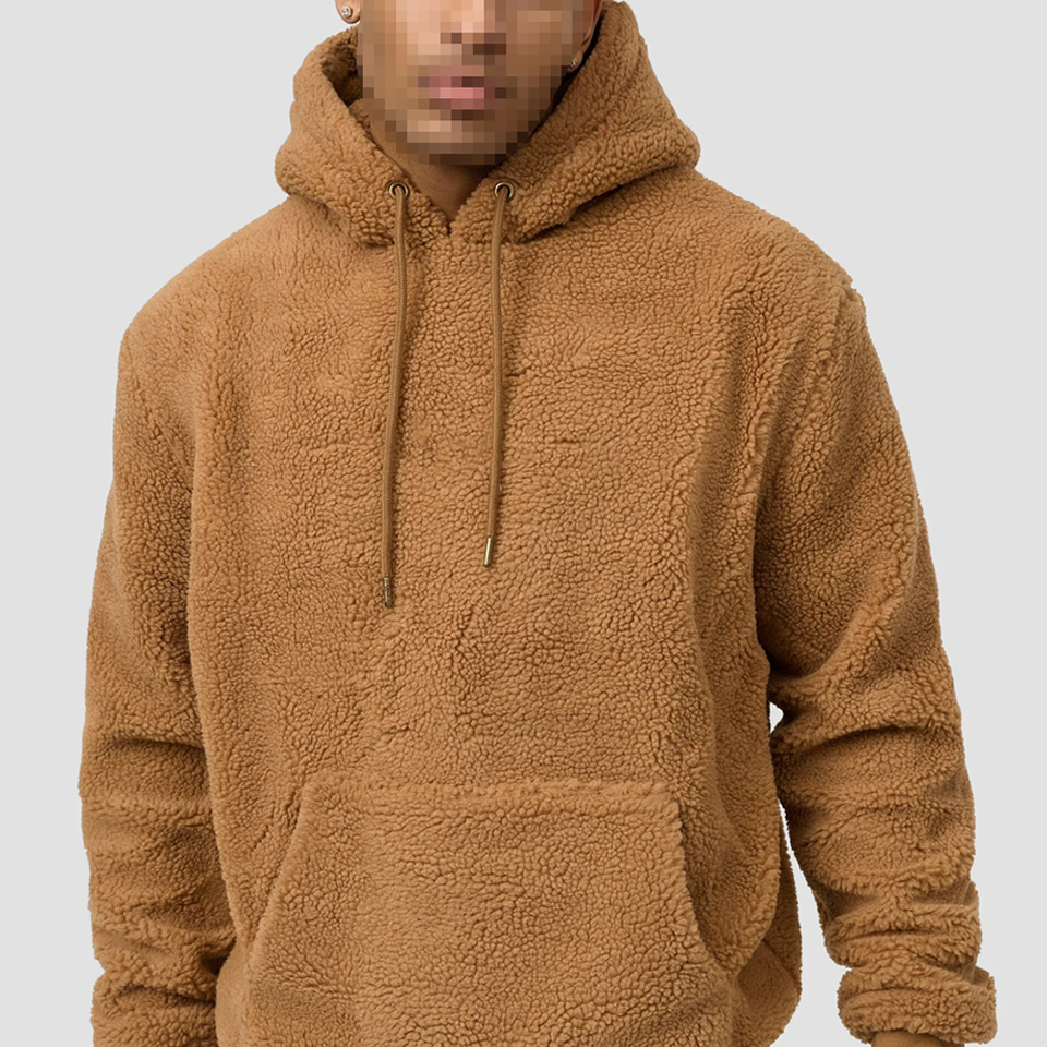 OEM High Quality Custom Embroidery Logo Winter Men's Sherpa Fleece Hoodie Oversized Blank 100% Cotton Plain Dyed Pullover