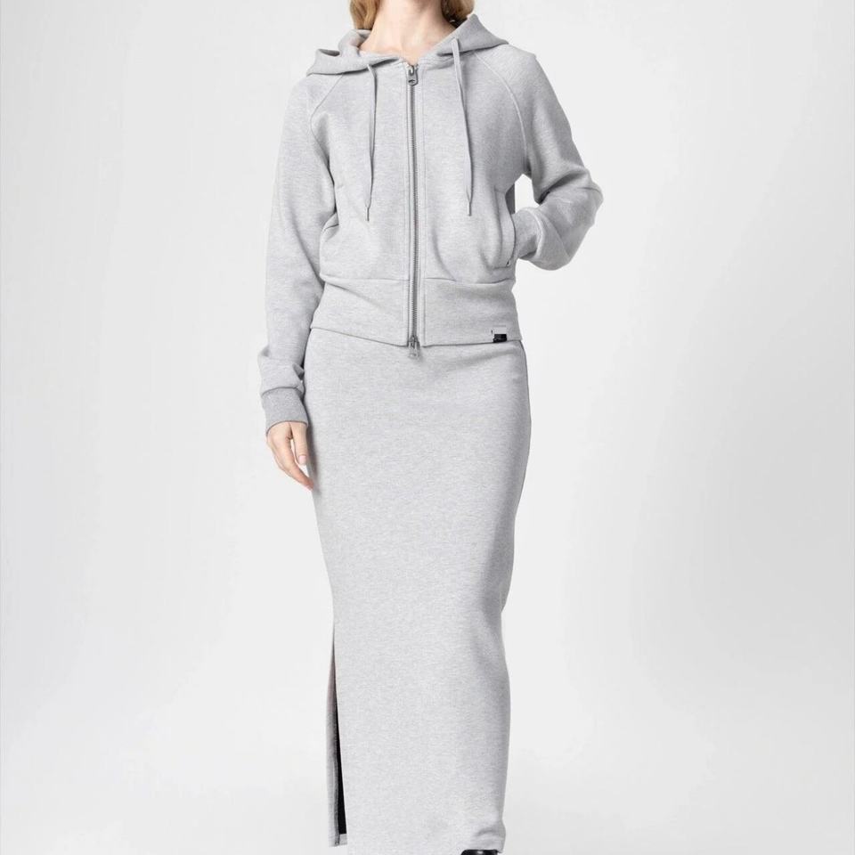 Ensemble de survêtement décontracté personnalisé avec logo OEM de haute qualité, sweat à capuche entièrement zippé et jupe longue