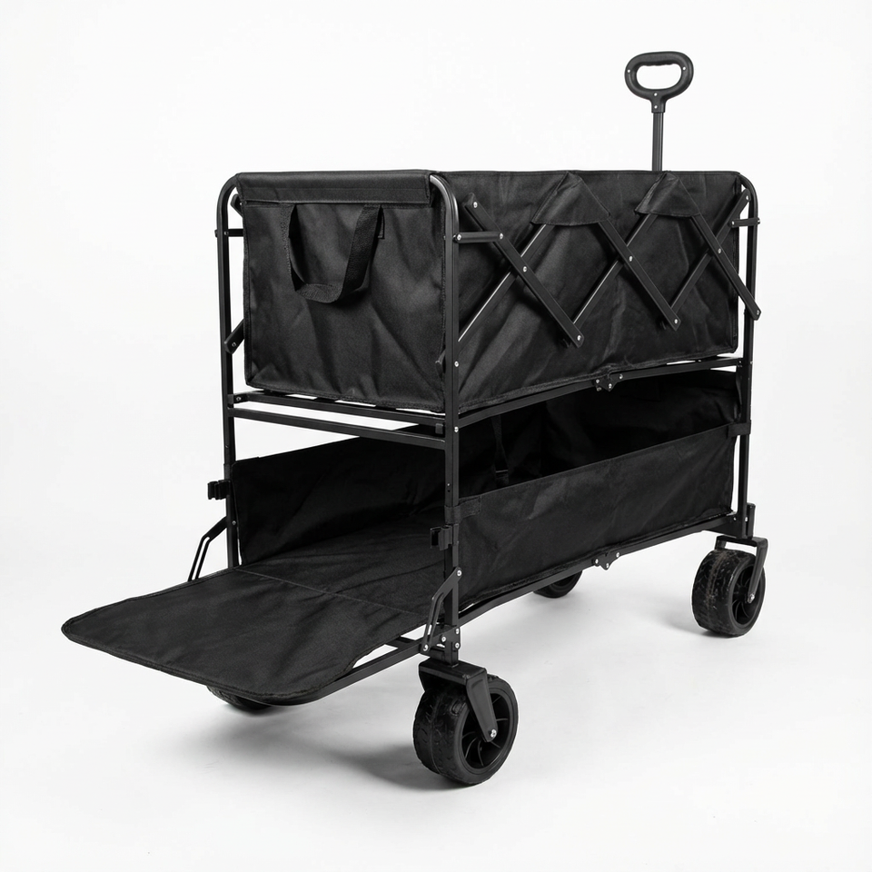 Chariot pliable en acier à double plateau, grande capacité, durable, de haute qualité, pour le camping, la pêche, les courses en plein air