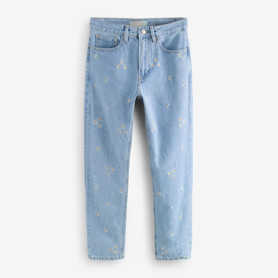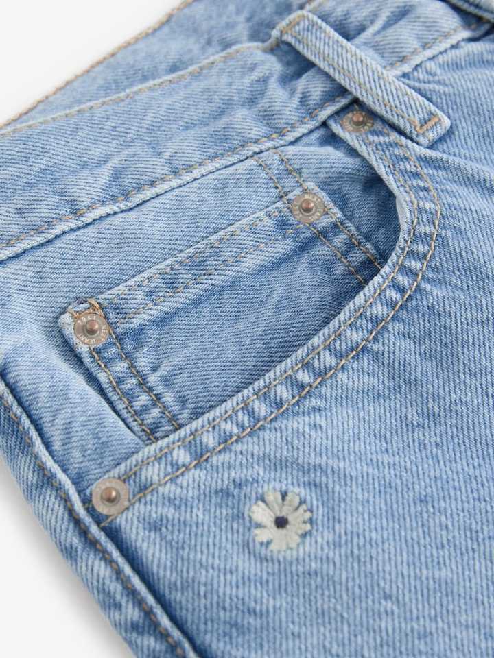 Jean Droit Femme Brodé de Fleurs, Style Décontracté d'Été, Écologique, Haute Qualité OEM, Denim Tendance Streetwear