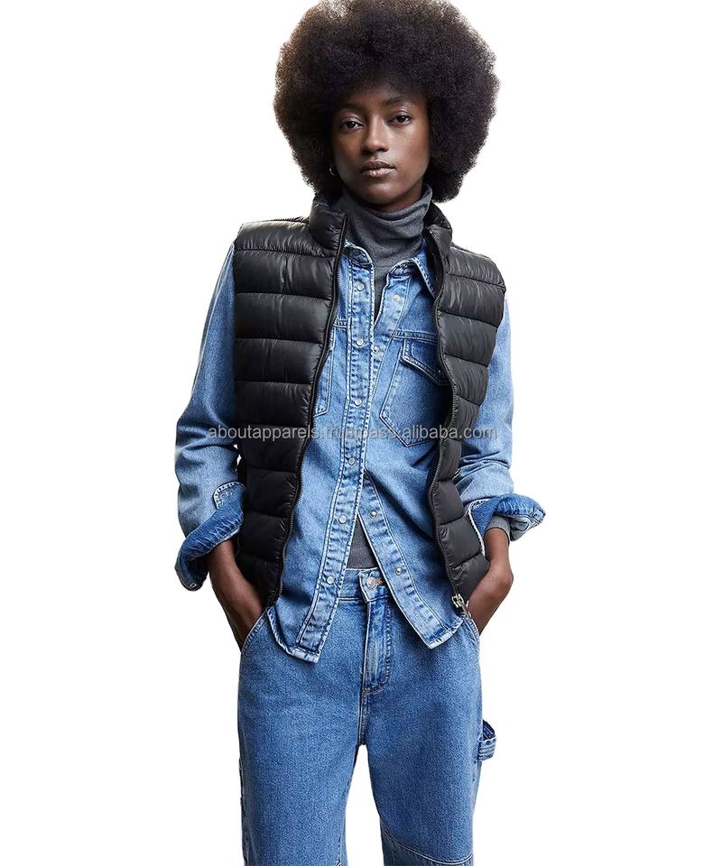 OEM Vestes matelassées de haute qualité pour femmes col haut hiver chaud élégant fermeture éclair bulle respirant broderie à rayures