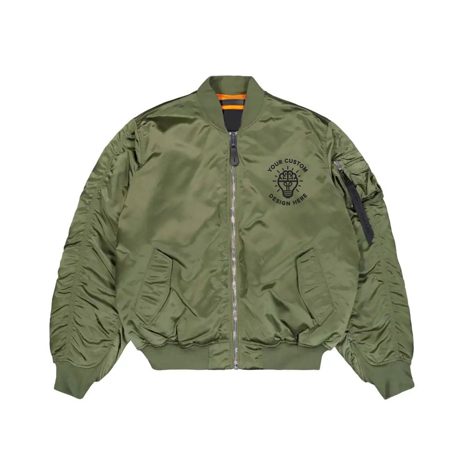 Blouson aviateur homme OEM de haute qualité, broderie/impression de logo personnalisé, blouson MA1 fin, tissu tissé imperméable
