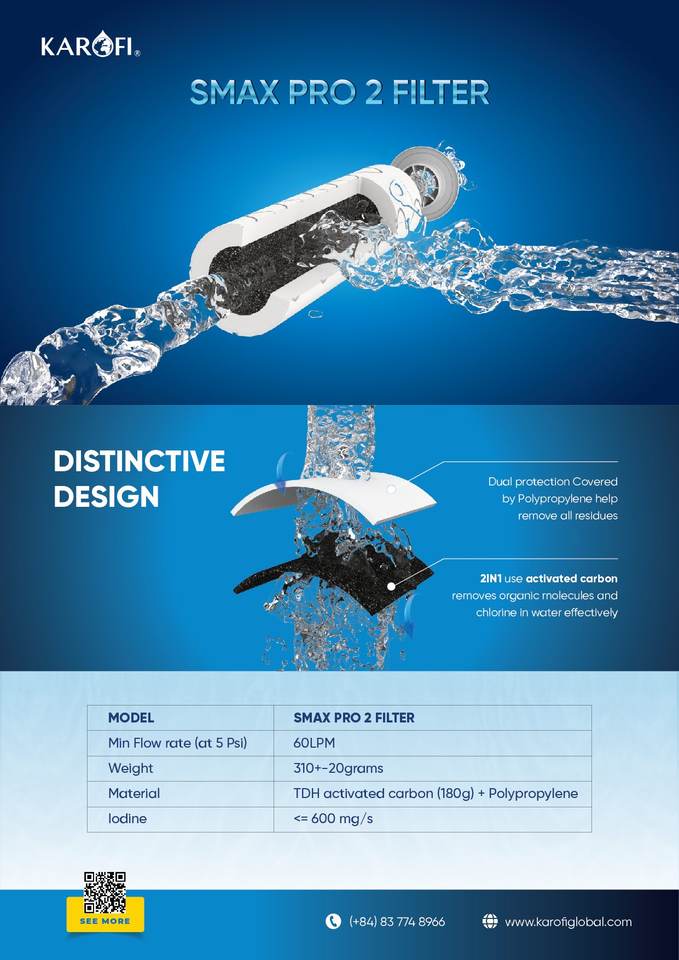 Pièces de rechange OEM de haute qualité en microfibre carbone pour pré-filtre, source d'alimentation manuelle, pour système d'osmose inverse (RO) Karofi Smax Pro 2
