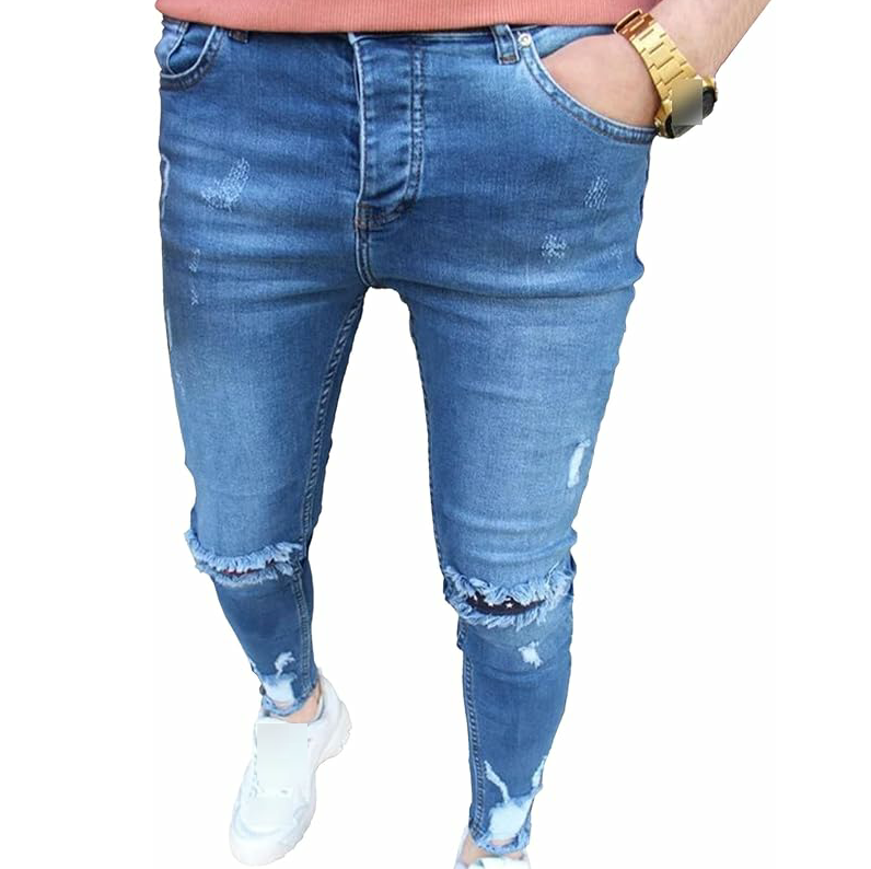 Pantalon en jean slim fit droit délavé de haute qualité OEM pour hommes, respirant, élégant, couleur unie, élasthanne/coton, fermeture éclair