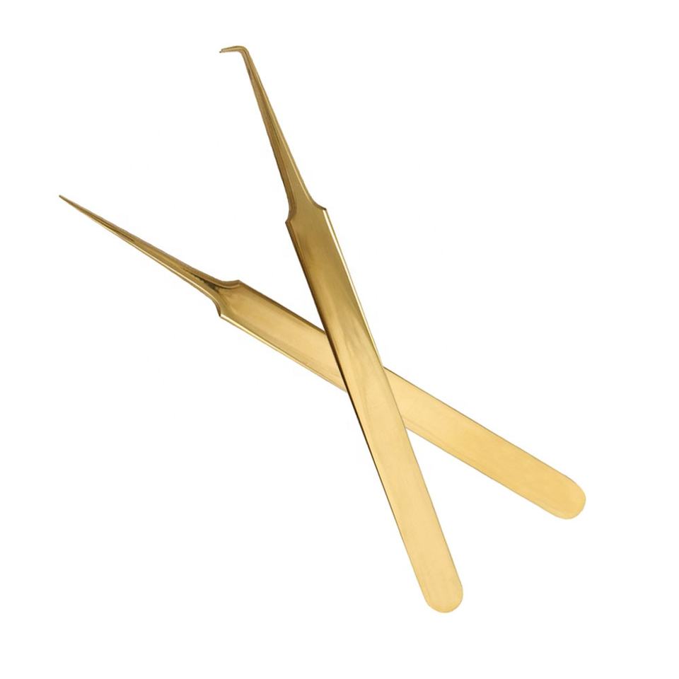 Pince à épiler d'extension de cils en acier inoxydable de haute qualité OEM pointe pointue perle or pour les professionnels de la beauté vente en gros