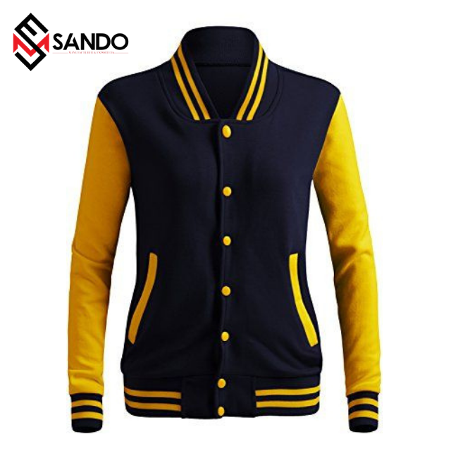 Vestes universitaires OEM de haute qualité pour femmes Écussons brodés avec logo personnalisé Rivet à rayures camouflage Meilleur prix Doublure en viscose