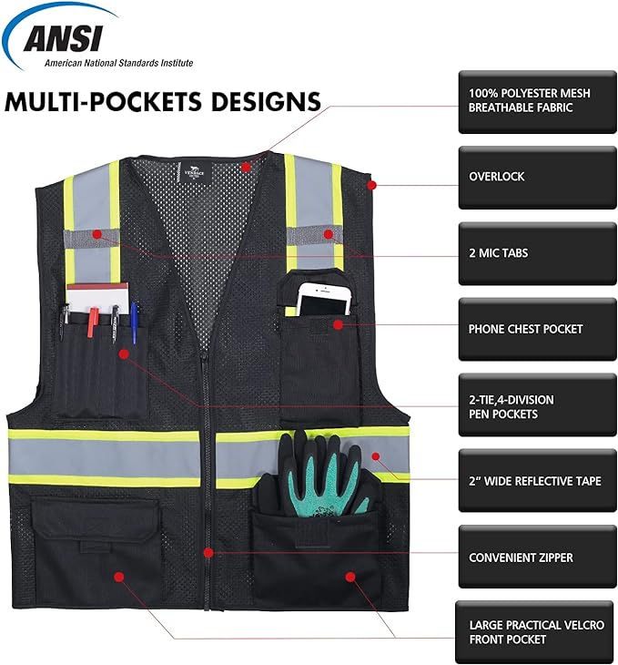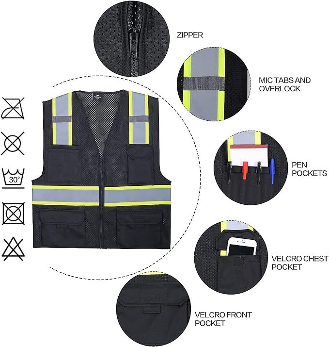 Veste haute visibilité OEM avec gilet de sécurité réfléchissant en maille avec poches et fermeture éclair Logo personnalisable de la meilleure qualité