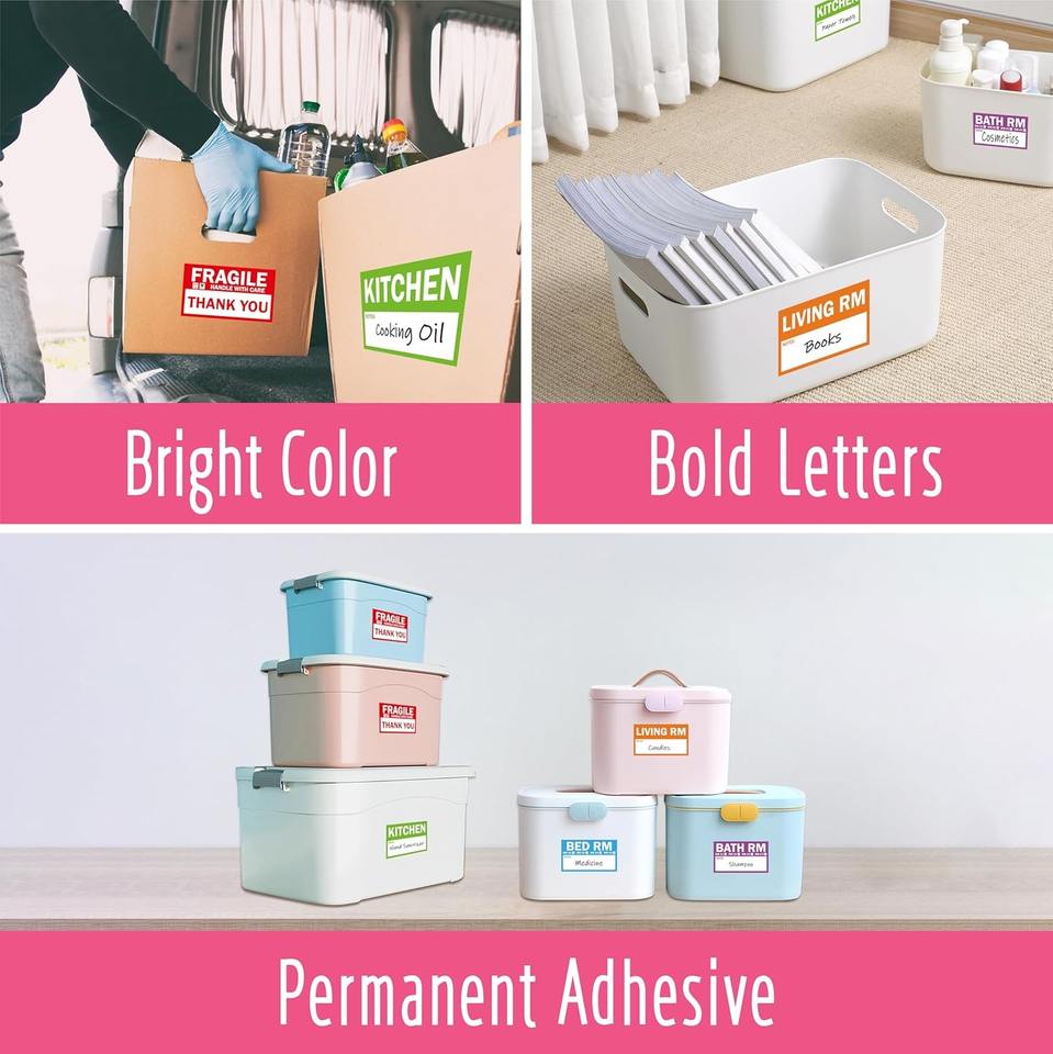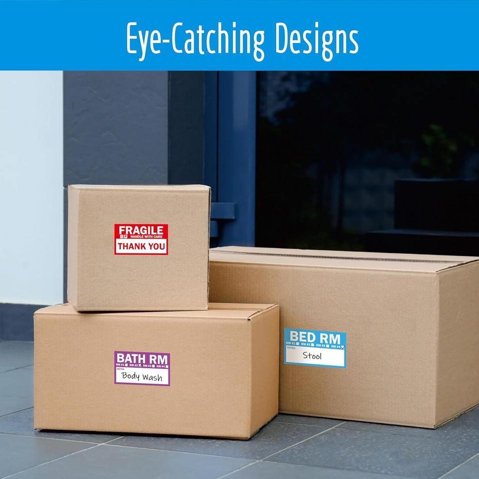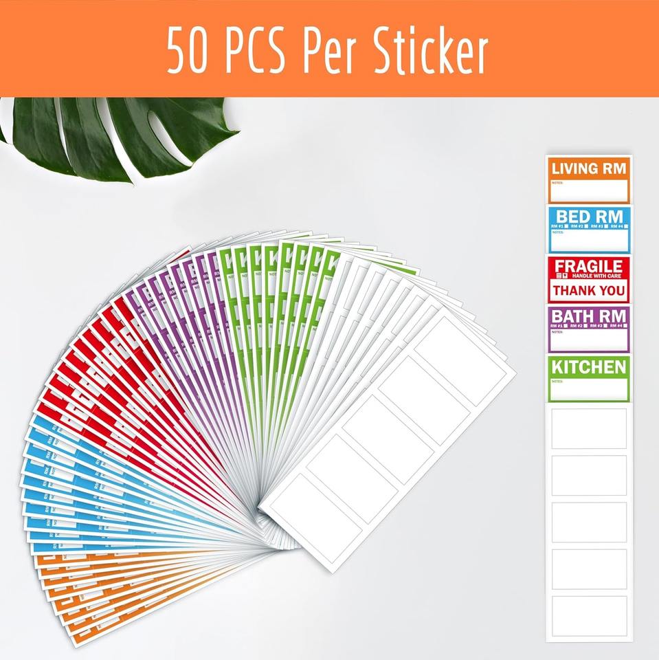 Étiquettes de déménagement à domicile OEM 5 étiquettes de codage couleur autocollants de boîte d'emballage avec 50 autocollants fragiles