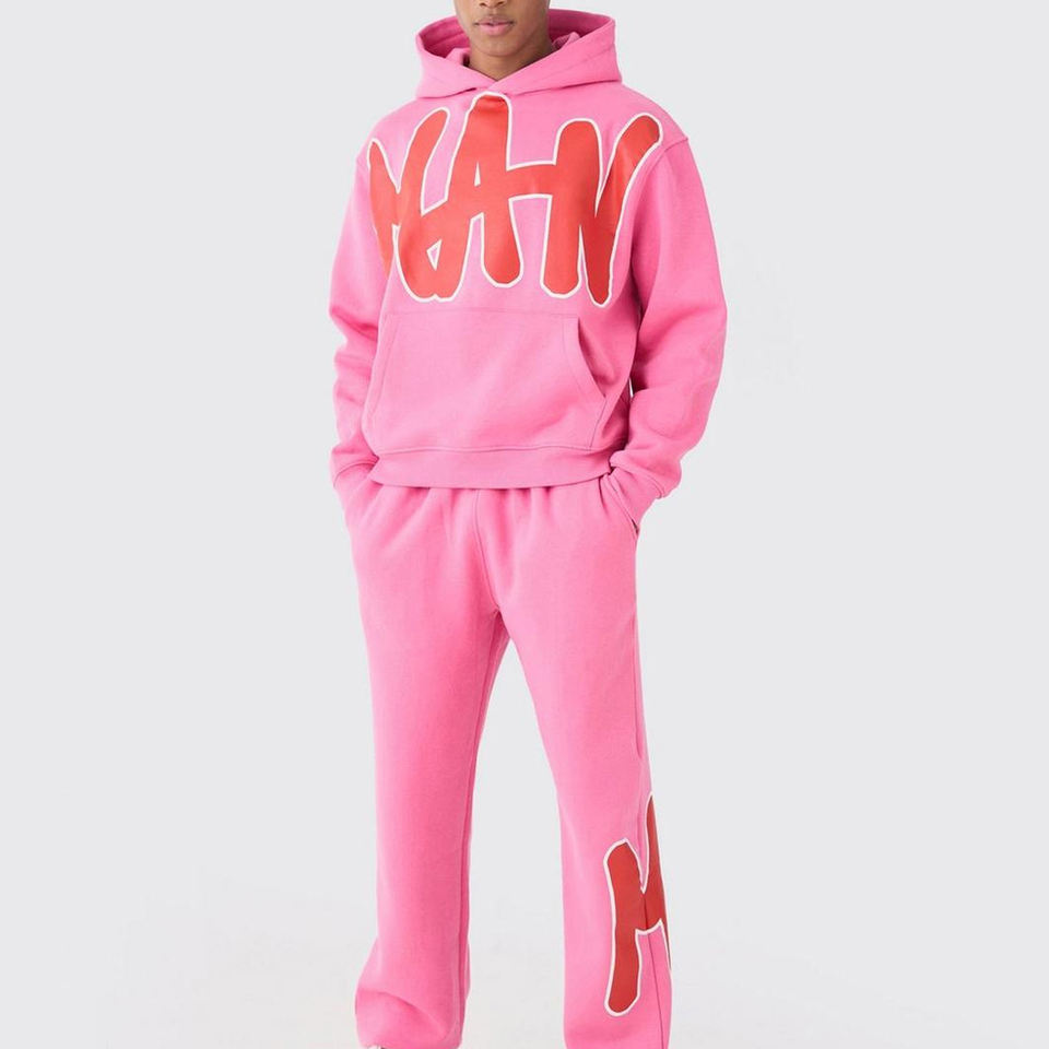 Ensemble de survêtement rose à capuche pour homme, 100 % coton, chaud et respirant, grandes tailles, meilleur prix, imprimé, idéal pour l'hiver