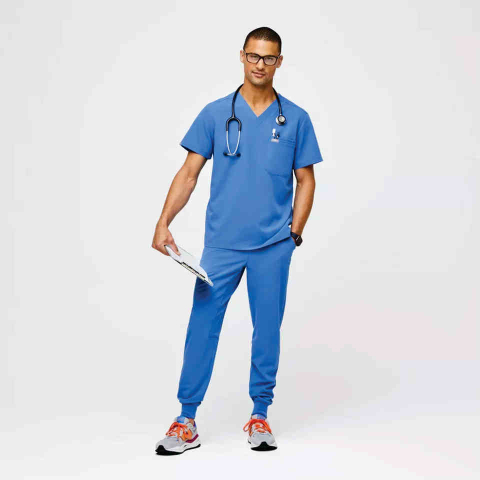 Uniformes médicaux OEM pour hommes en tissu satiné, faible MOQ, tailles personnalisées