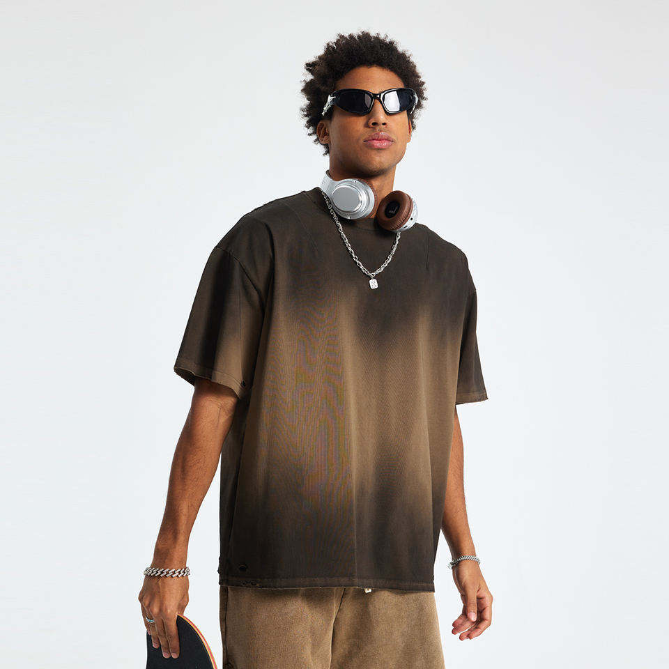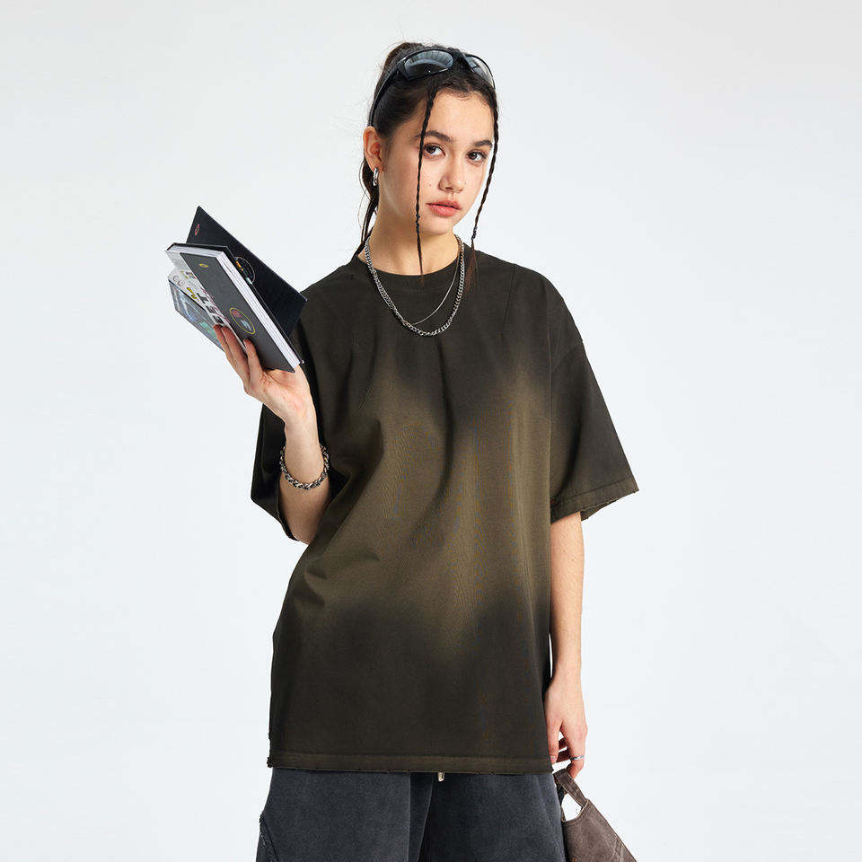 T-shirt unisexe OEM personnalisé avec logo, coupe classique, effet délavé, imprimé graphique 3D, vêtements unis, 100 % respirant, vente chaude