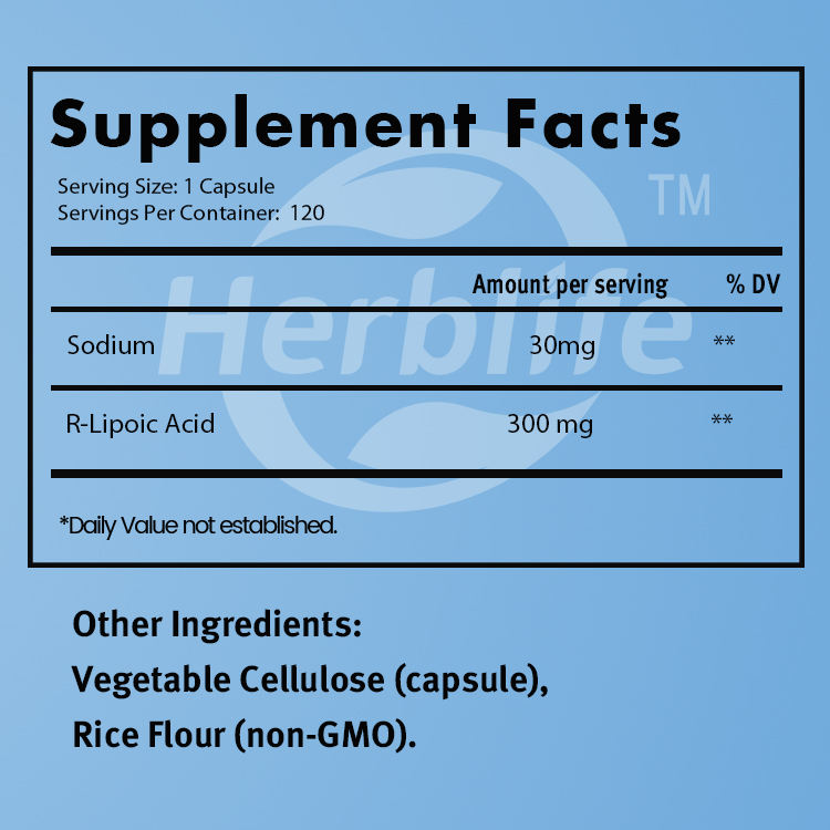 Ingrédient principal:Sodium, acide R-lipoïque, etc.