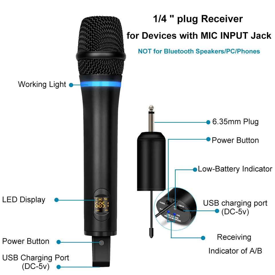 Microphone sans fil USB dynamique UHF à réduction de bruit W8 avec longue portée pour conférence et lecteur de karaoké mobile