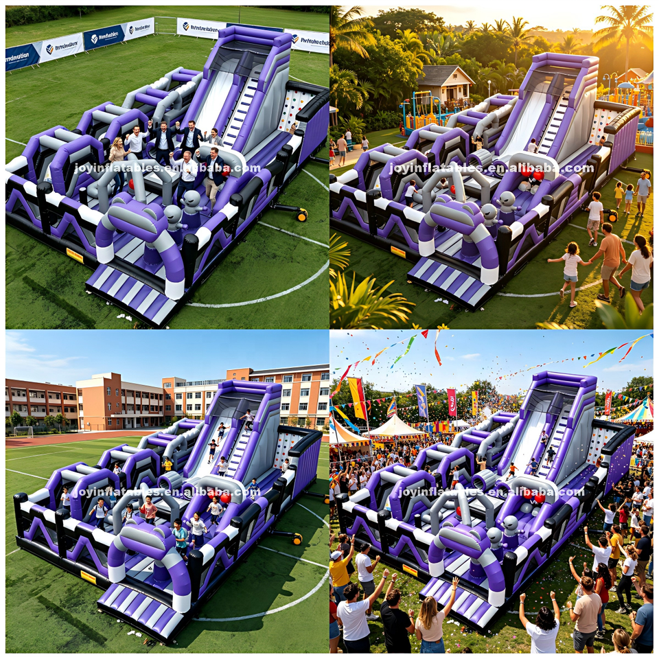 Parcours d'obstacles gonflable géant OEM, château gonflable commercial en PVC avec toboggan pour les festivals et les célébrations en plein air