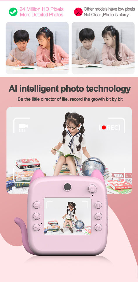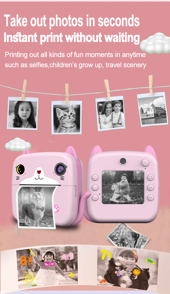 Mini caméra d'impression instantanée OEM avec application photo, impression d'étiquettes, jeux amusants, écran HD 2,4 pouces, imprimante A21 avec caméra