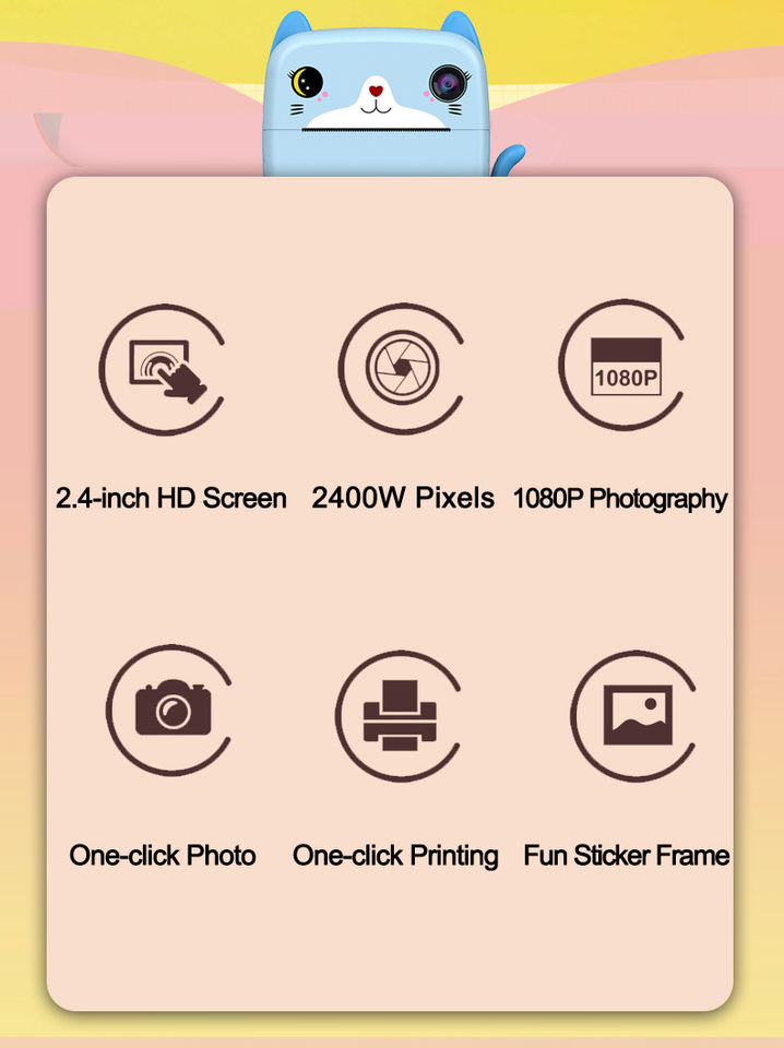 Fonction principale:Photo, vidéo, musique, petits jeux/Appareil photo à impression instantanée