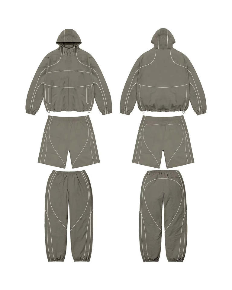 Ensembles de jogging OEM 3 pièces avec logo personnalisé, coupe-vent, t-shirts, shorts, veste, survêtements de sport en nylon réfléchissant pour hommes