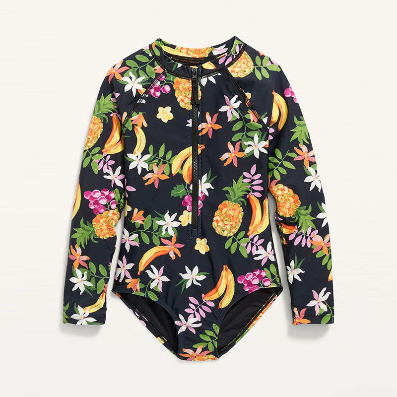 Haut de surf une pièce à manches longues, imprimé à feuilles multiples, fermeture éclair, Protection solaire UV, maillots de bain pour enfants, Protection contre les éruptions cutanées