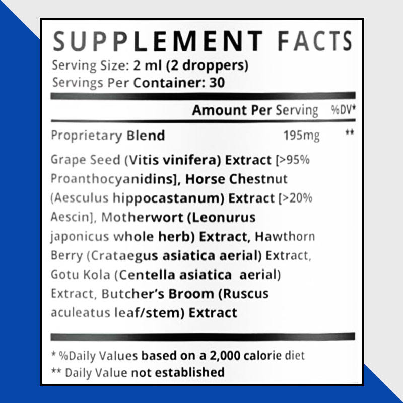 Ingrédient principal:Extrait de pépins de raisin (Vitis vinifera), Extrait de marron d'Inde (Aesculus hippocastanum), Extrait d'herbe entière d'agripaume (Leonurus japonicus)