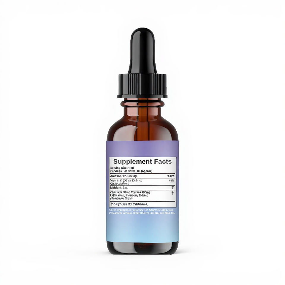 Gouttes de mélatonine liquide OEM 60 ml, complément alimentaire pour le sommeil avec vitamine D3, L-théanine, extrait de sureau, saveur naturelle de baies