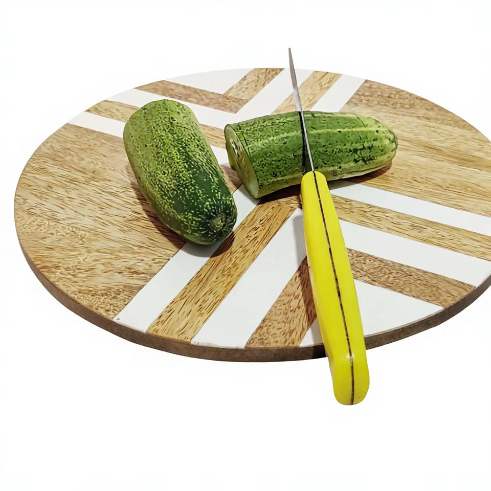 Planche à fromage en bambou de luxe écologique OEM 10x10 pouces avec design à rayures blanches, blocs de découpe Dream Crafts India Home